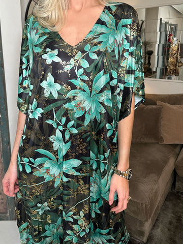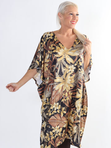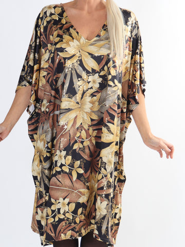 Azmina Flower - Plus size tunikakjole i løs pasform med blomsterprint