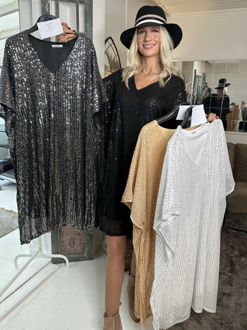 Azmina - Plus size tunikakjole i løs pasform med pailletter