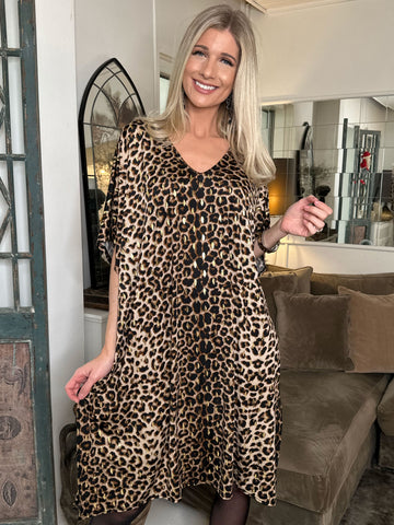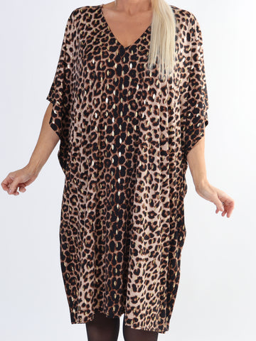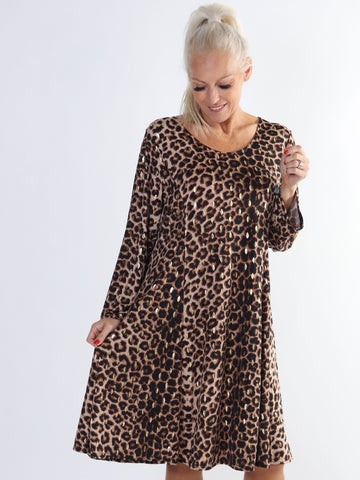 Azmina Leo - Plus size tunikakjole i løs pasform i leopardprint