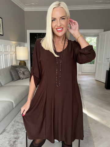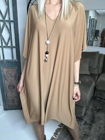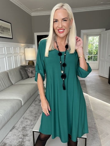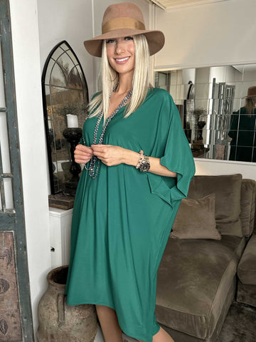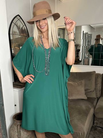Noemi - Løs plain kjole med vidde ærmer