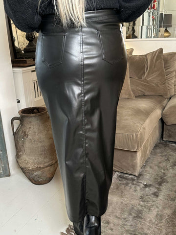 Clair - Læderlook nederdel med slids foran