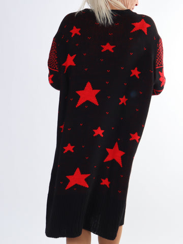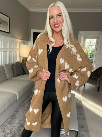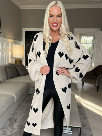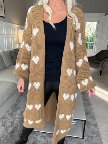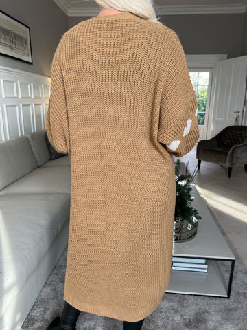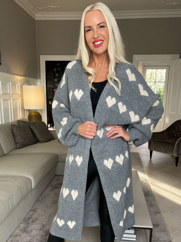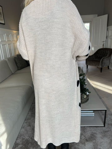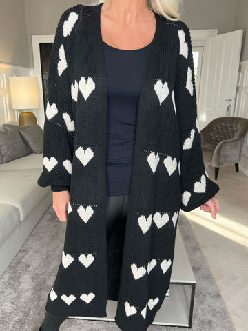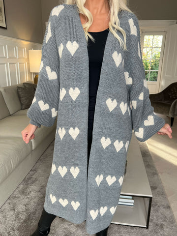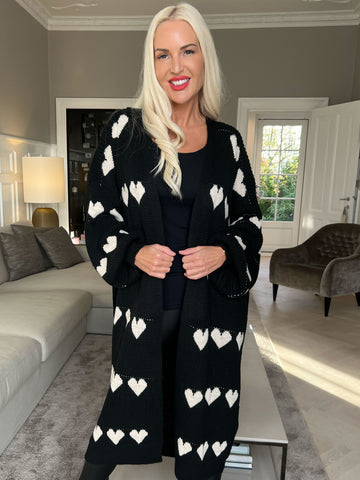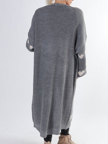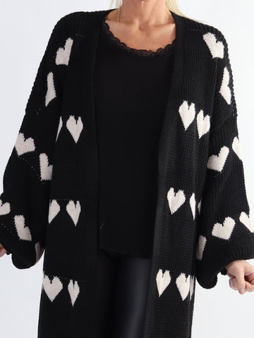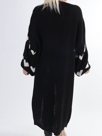 Grace - Lang strikcardigan med hjerter og ballonærmer