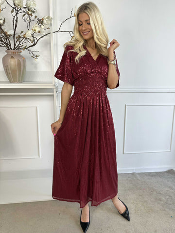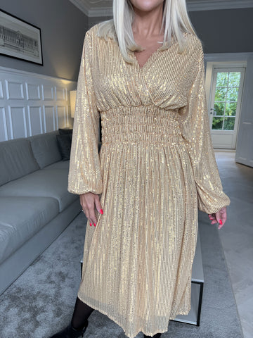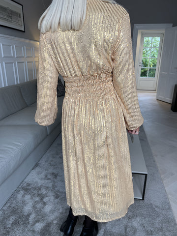 Pams Glitter Midi L/S - Smuk kjole med smock og pailletter
