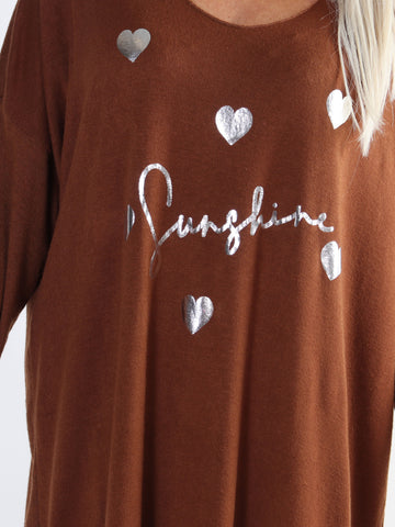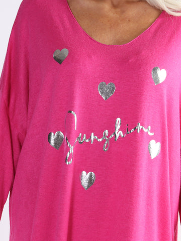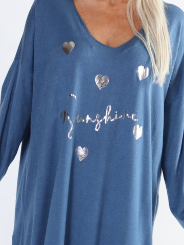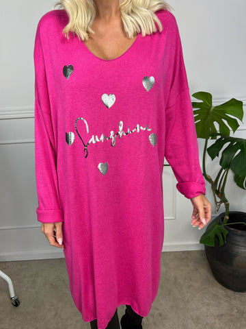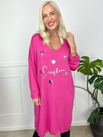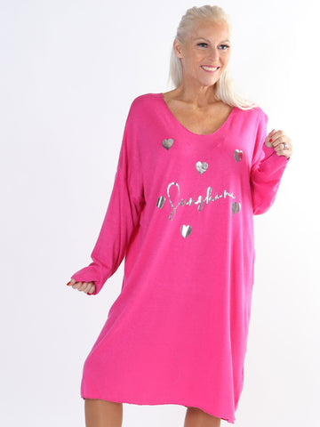 Lucia - Plus size kjole i viskose med print af sølv hjerter og skrift
