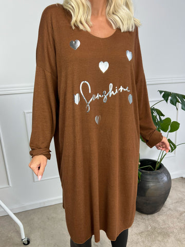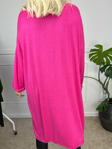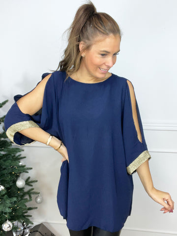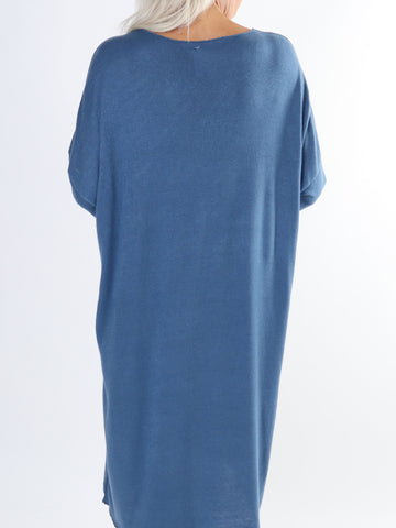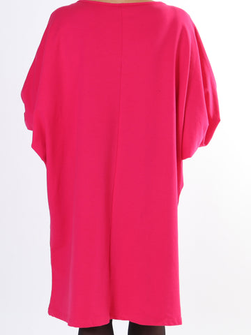 Genova - Ensfarvet tunika med glimmerkant på ærmet