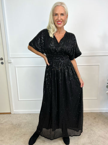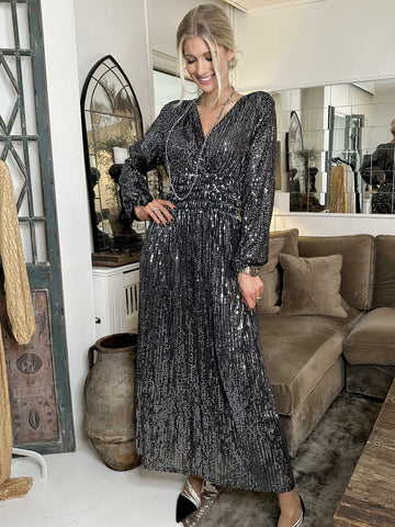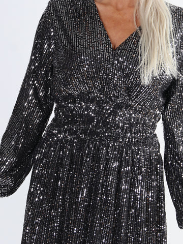 Pams Glitter L/S - Lang smuk kjole med pailletter