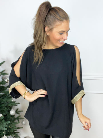 Pams Glitter Shirt L/S - Bluse med pailletter og lange ærmer