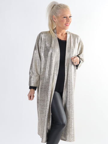 Jayda - Fin plus size cardigan i shiny stof