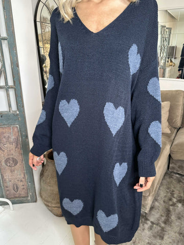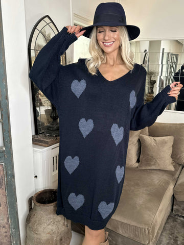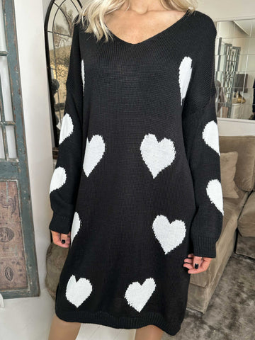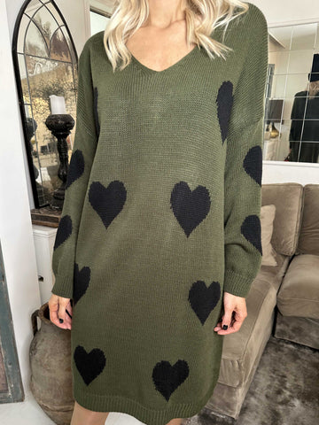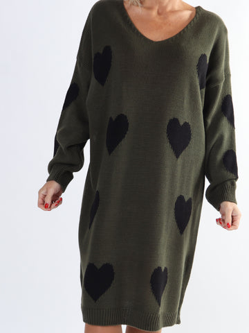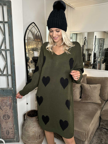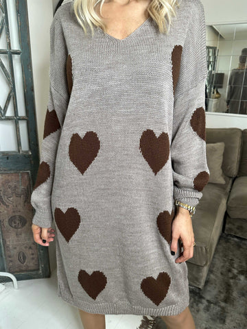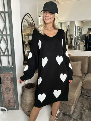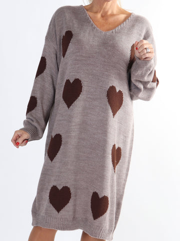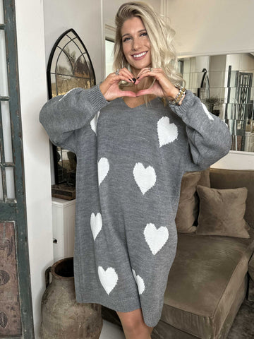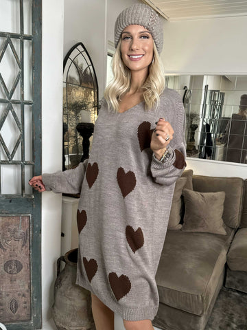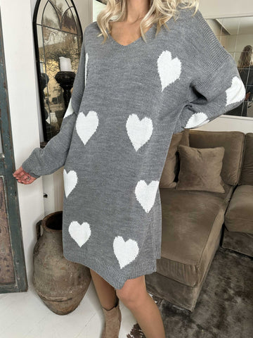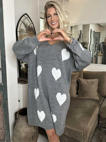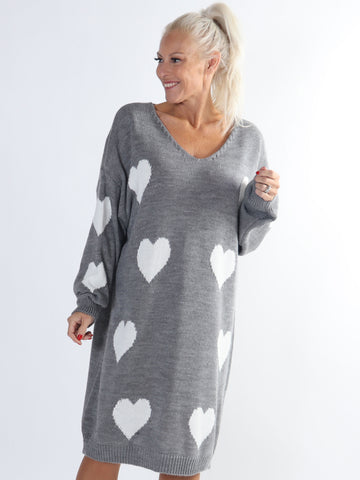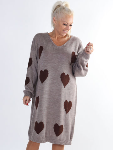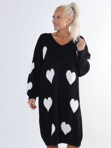 Lela - Plus size strikkjole med hjerter
