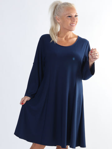 Maj Plain L/S - Elastisk plus size ensfarvet kjole