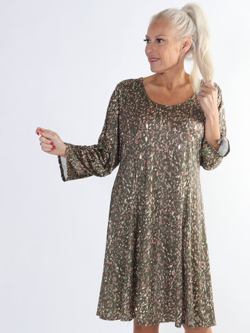 Maj Leo L/S - Elastisk kjole i leopardprint med gulddetaljer