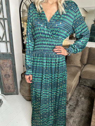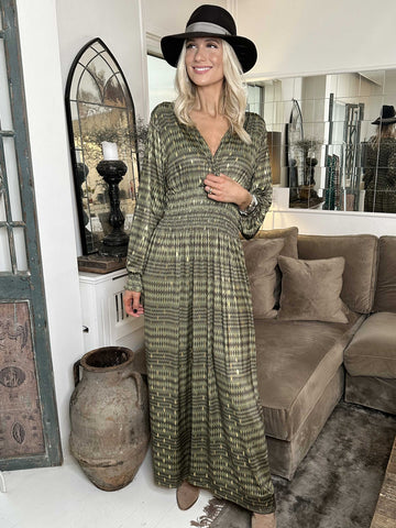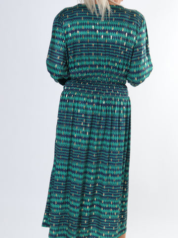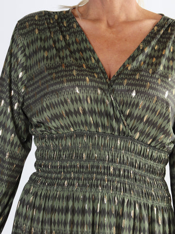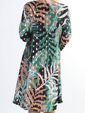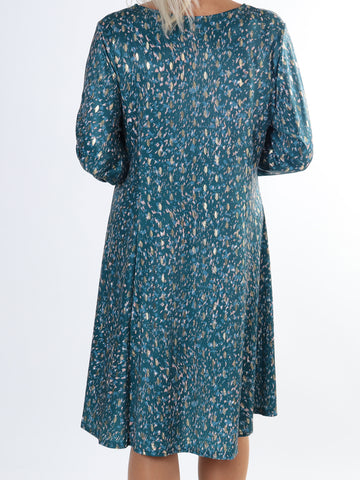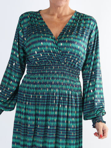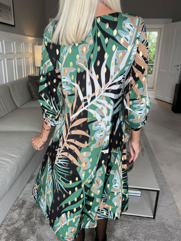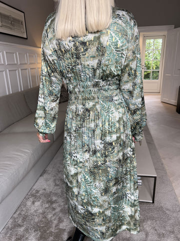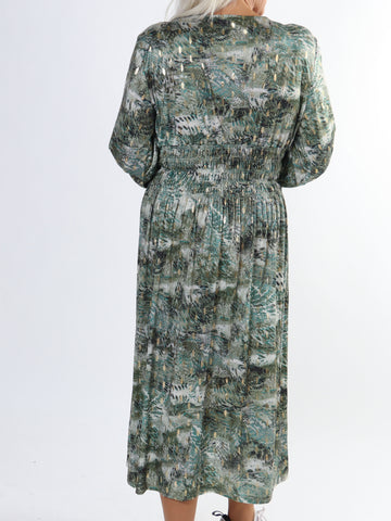 Maj Forest L/S - Elastisk mønstret kjole med gulddetaljer