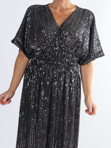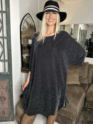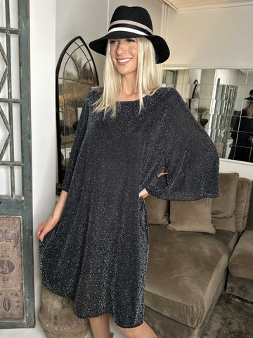 Noemi Glitter - Løs kjole med vidde ærmer og glimmertråde