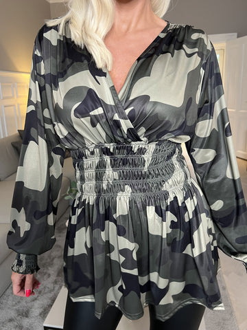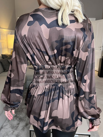 Pams Camo Shirt L/S - Bluse i elastisk stof med lange ærmer