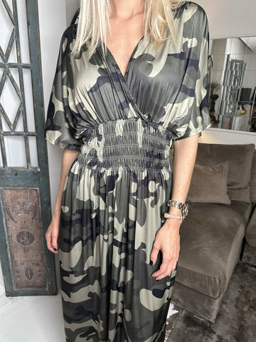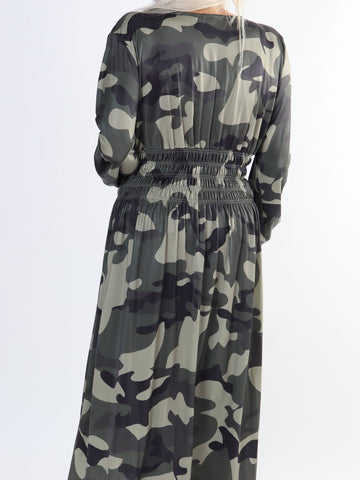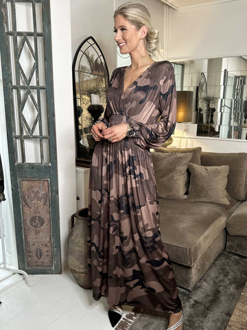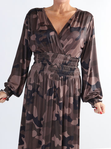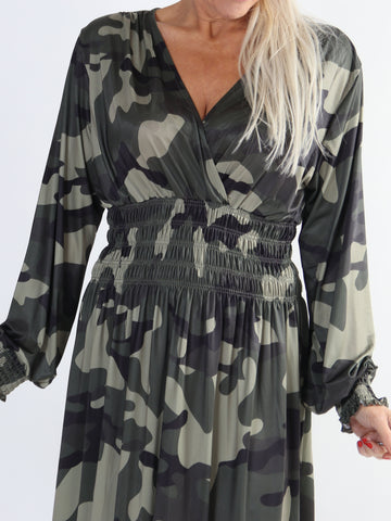 Pams Camo - Lang elastisk kjole i camouflageprint