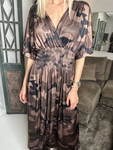 Juliana - Camouflage kjole i bomuld med v-udskæring