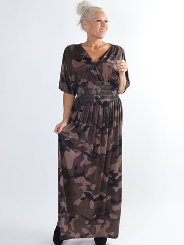 Pams Camo - Lang plus size elastisk kjole i camouflageprint