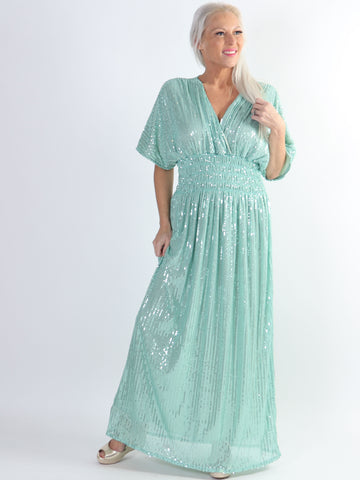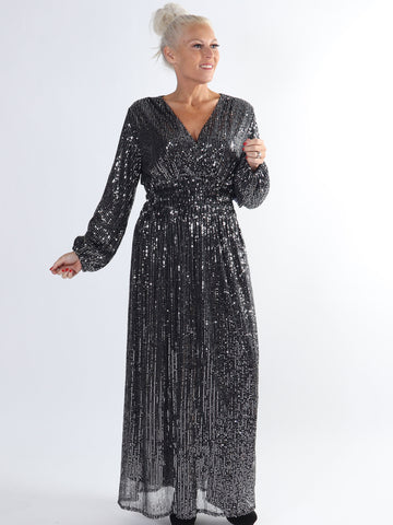 Pams Glitter - Lang smuk plus size kjole med pailletter