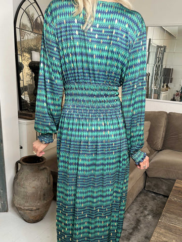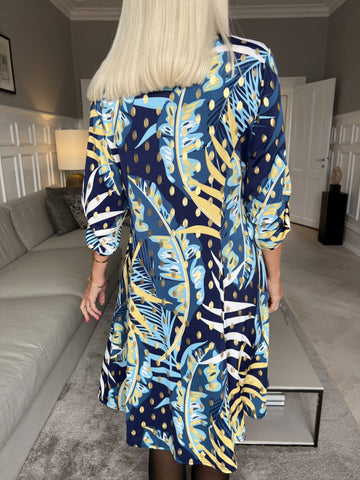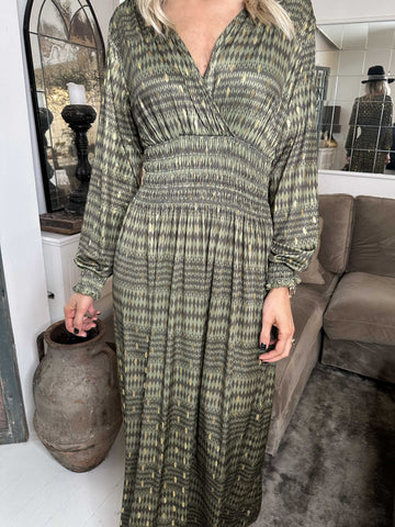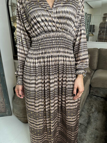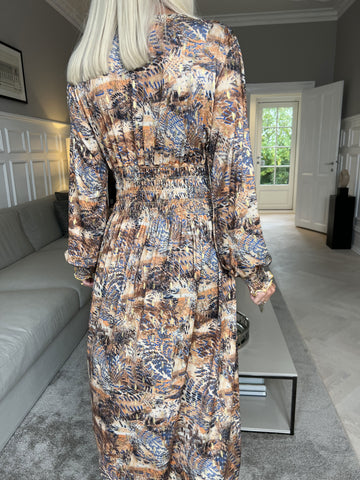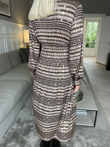 Maj Pattern L/S - Elastisk kjole i print med gulddetaljer