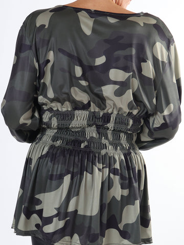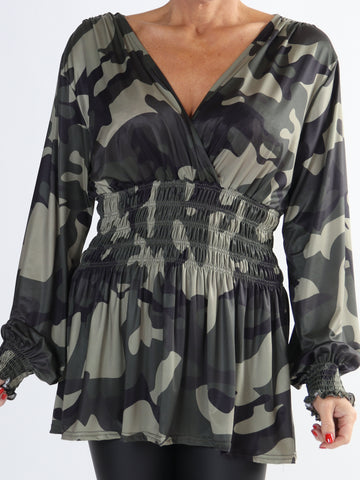 Pams Camo Shirt L/S - Plus size bluse med lange ærmer