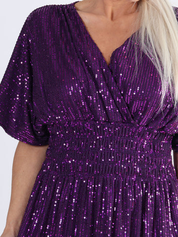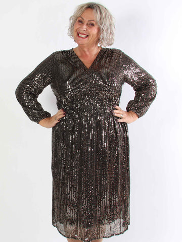 Maj Glitter L/S - Sød plus size paillet kjole der går ud i A facon