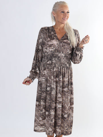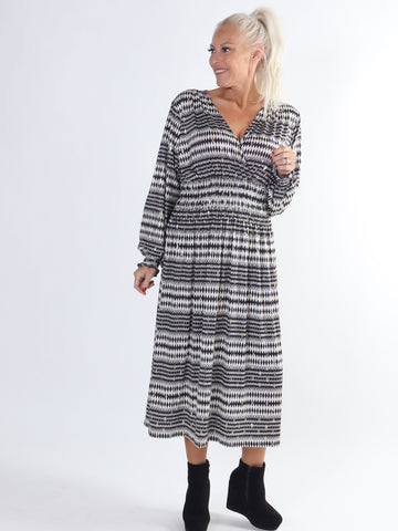 Pams Snake Midi L/S - Plus size kjole i krølfrit stof med lange ærmer
