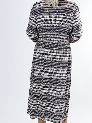 Pams Stripe Midi L/S - Elastisk mønstret kjole med gulddetaljer