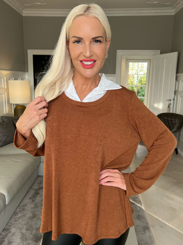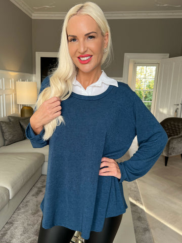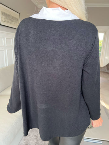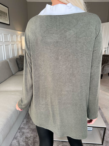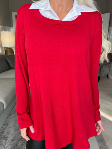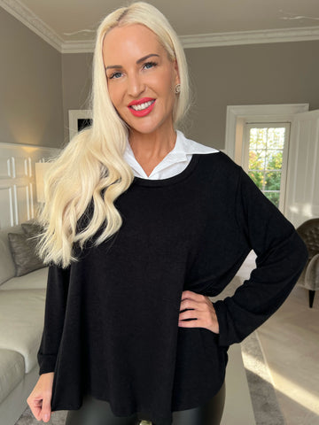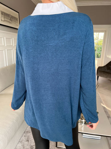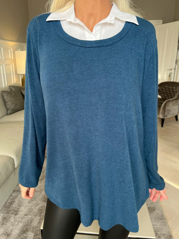 Rita - Dejlig blød bluse med hvid skjortekrave