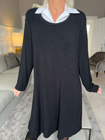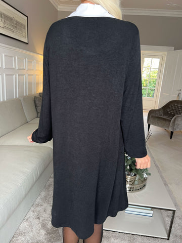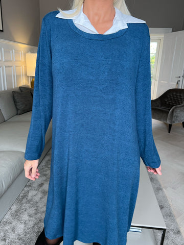 Rita Long - Dejlig blød kjole med hvid skjortekrave