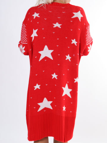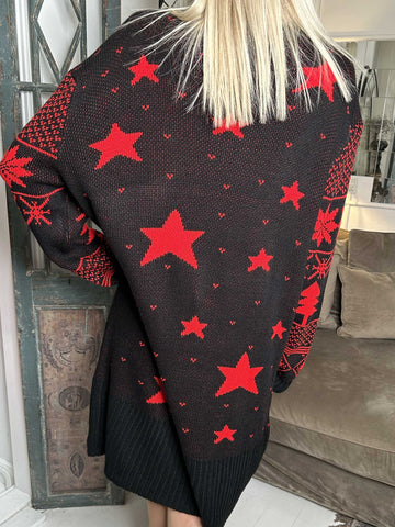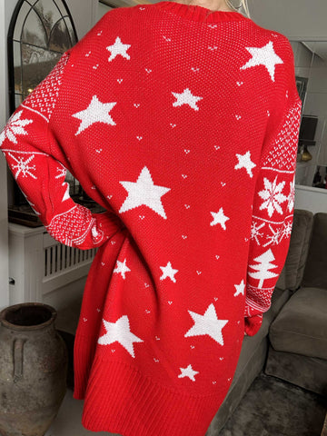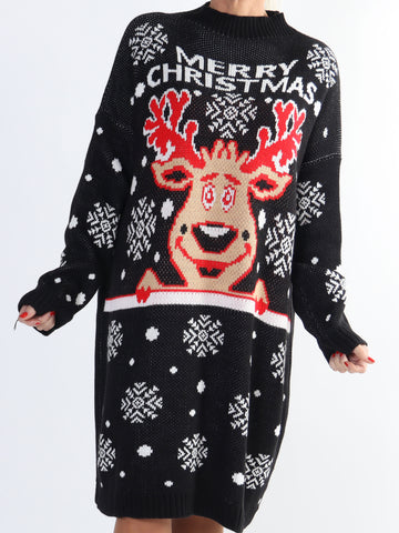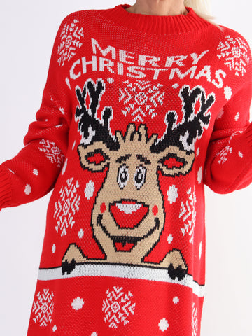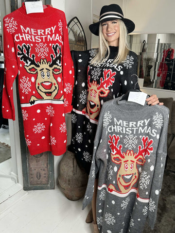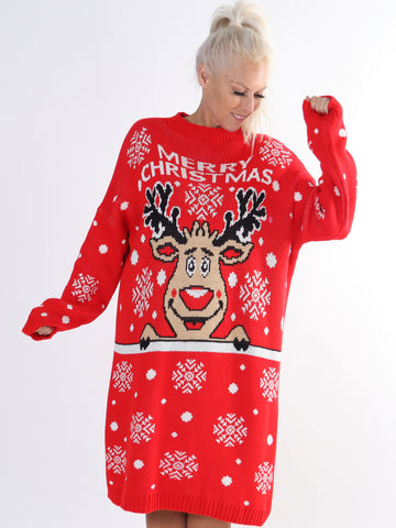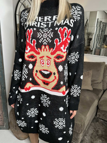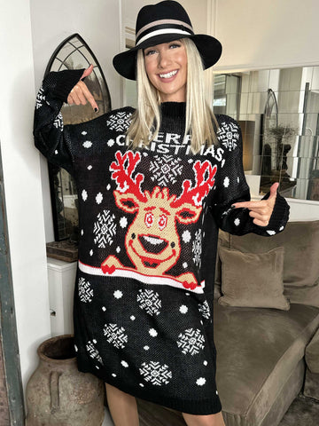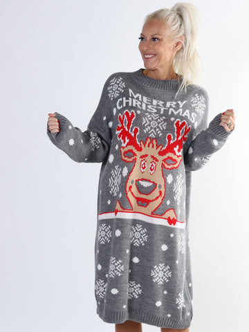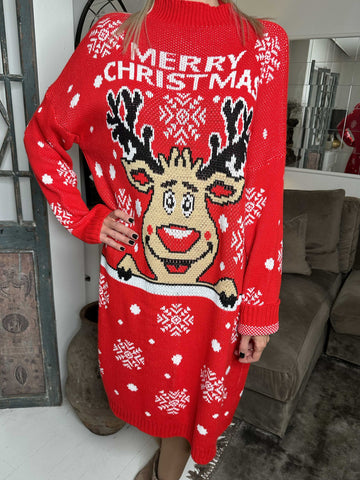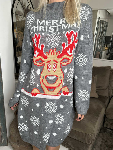 Rudolf - Plus size julestrikkjole med rudolf motiv