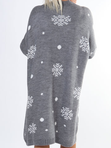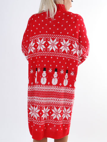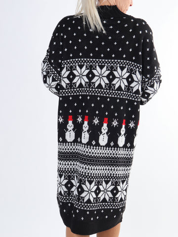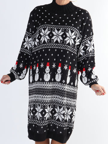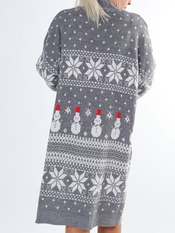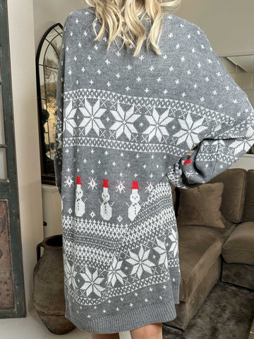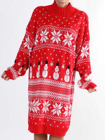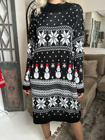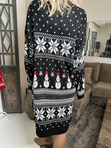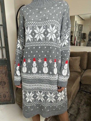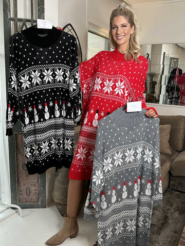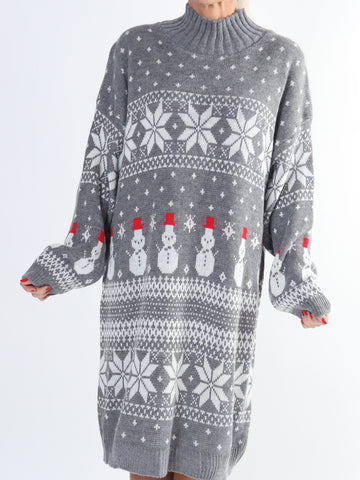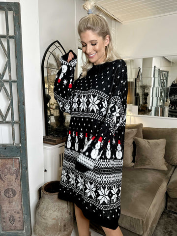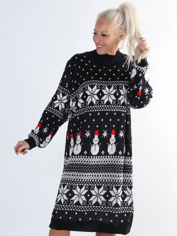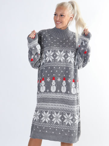 Snowman - Plus size jule strikkjole med snemænd og snefnug