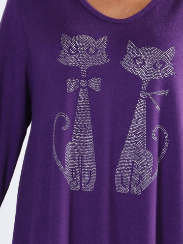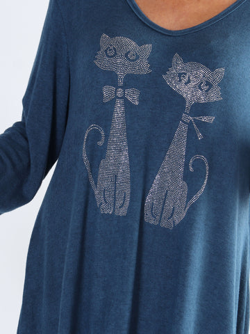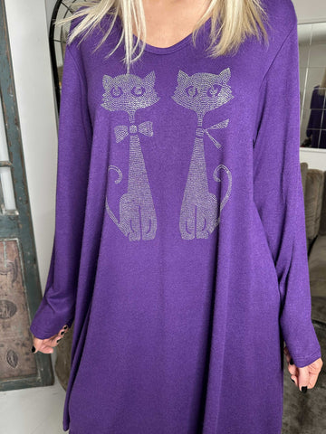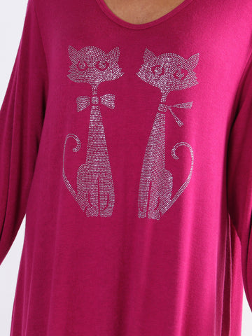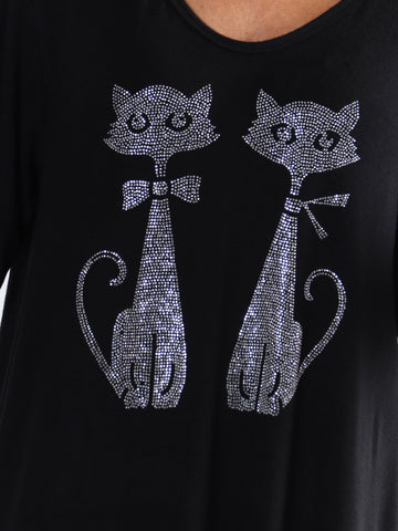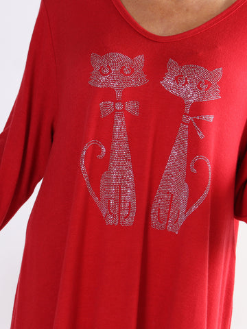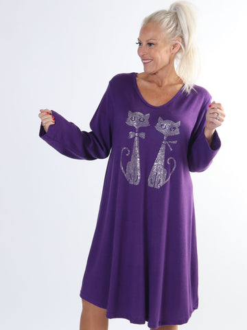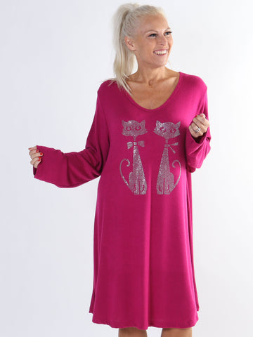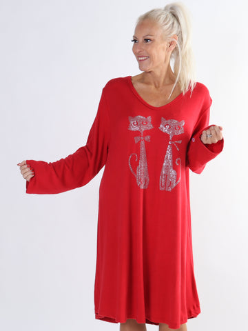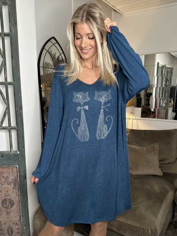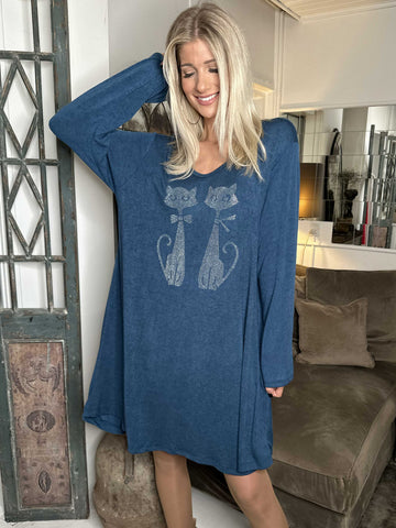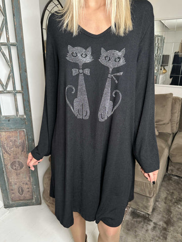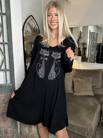 Talia - Blød kjole i viskose med kattemotiv af similisten