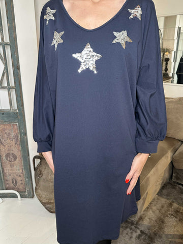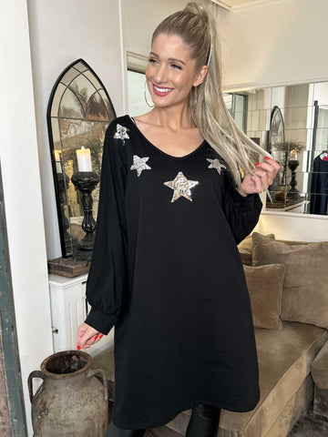 Torino - Oversized joggingkjole med stjerner af pailletter