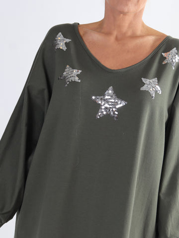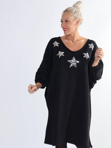 Torino - Plus size joggingkjole med stjerner af pailletter
