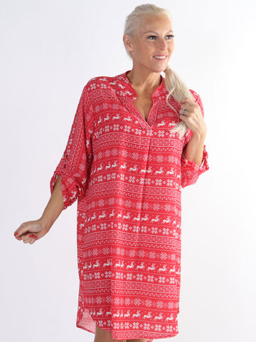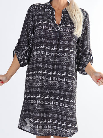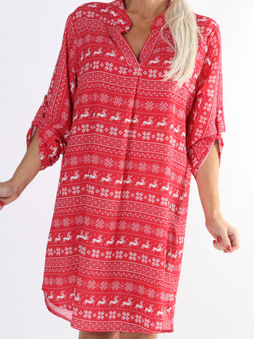 Vanesa Christmas Dress - Skjortekjole med julemønster