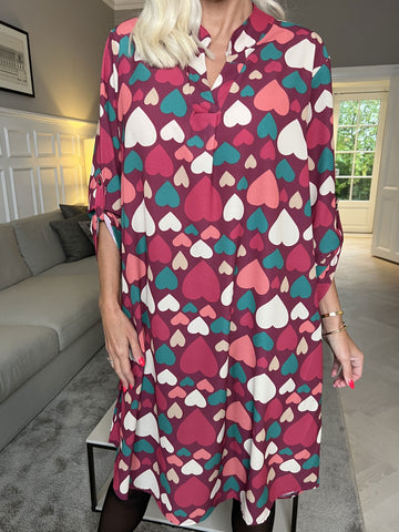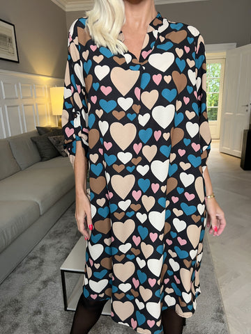 Vanesa Heart Long - Plus size kjole med hjerte mønster