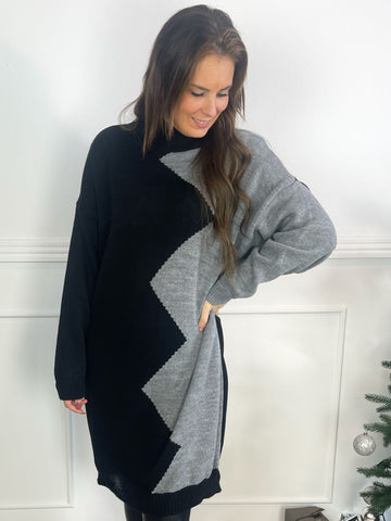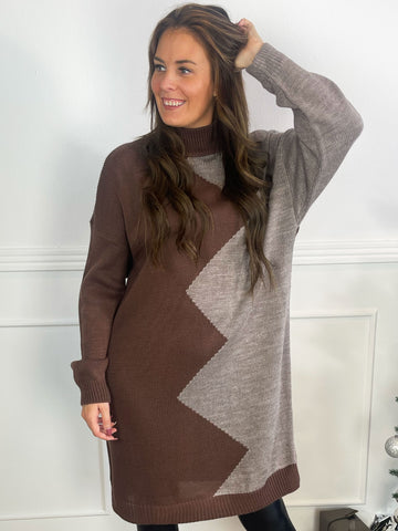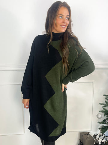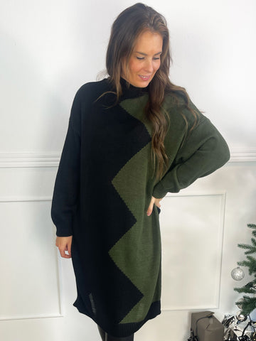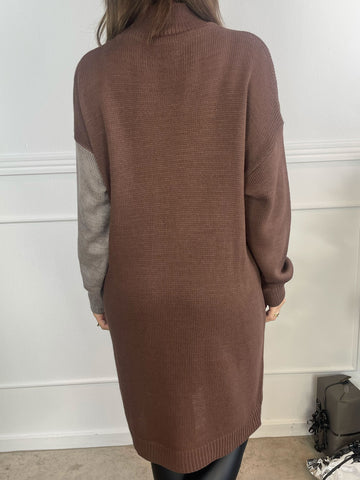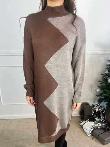 Venezia - Højhalset tofarvet strikkjole
