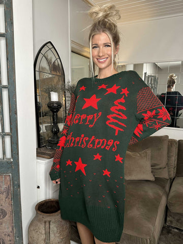 Christmas - Julestrikkjole med merry christmas stående