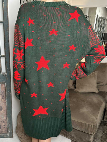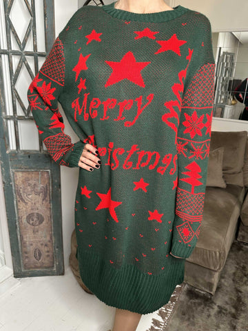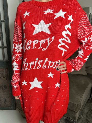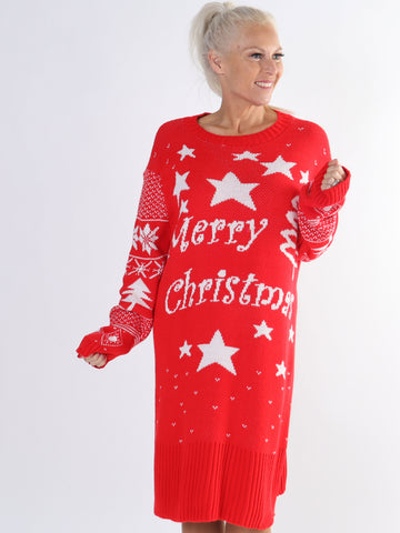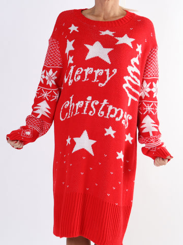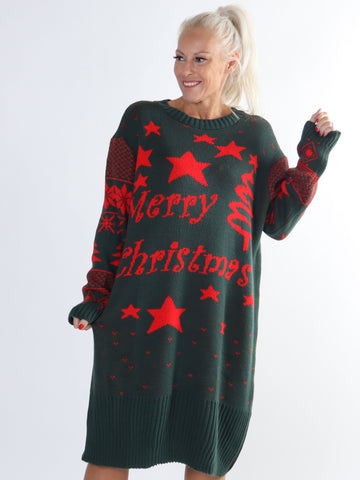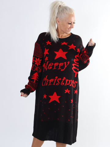 Christmas - Plus size julestrikkjole med merry christmas stående