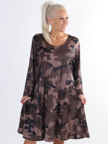 Pams Camo Midi L/S - Elastisk plus size kjole i camouflageprint