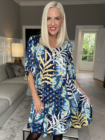 Amal Glitter - Plus size kjole i bomuld med tryk i similisten