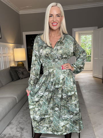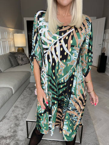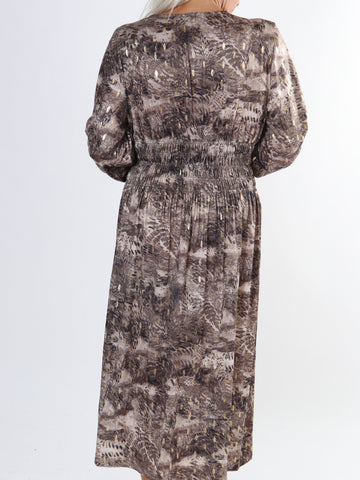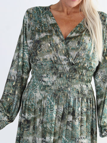 Maj Forest L/S - Plus size mønstret kjole med gulddetaljer