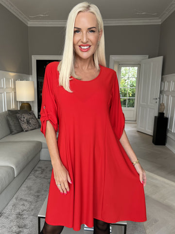 Azmina Plain - Ensfarvet elastisk plus size tunikakjole i løs pasform