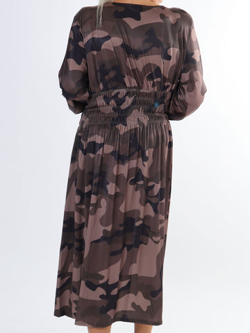 Pams Camo Midi L/S - Elastisk kjole i camouflageprint