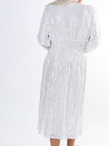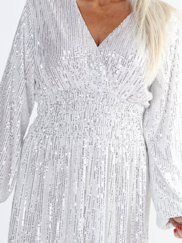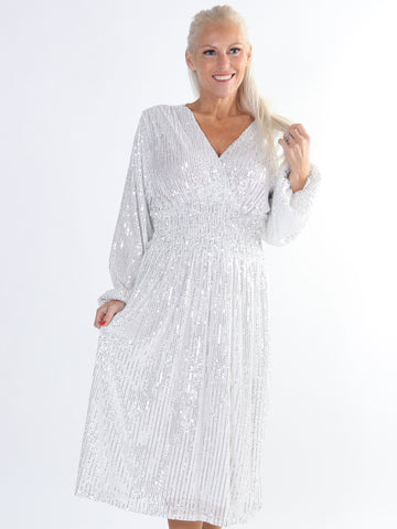 Pams Glitter Midi L/S - Plus size kjole med smock og pailletter