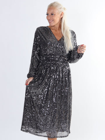 Pams Glitter L/S - Lang smuk plus size kjole med pailletter