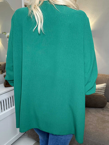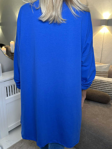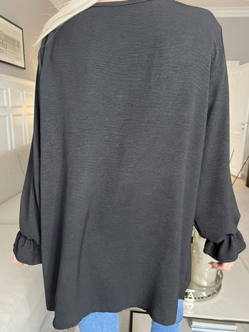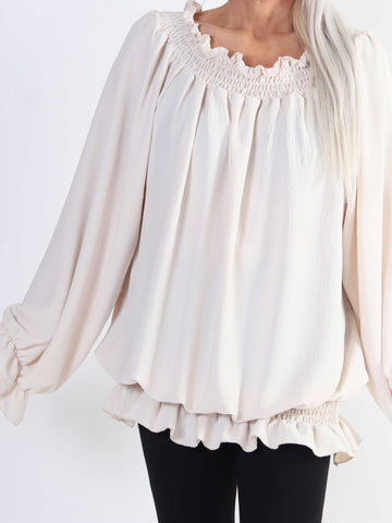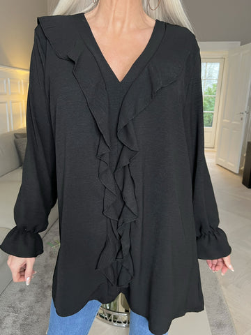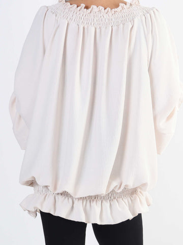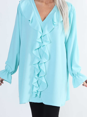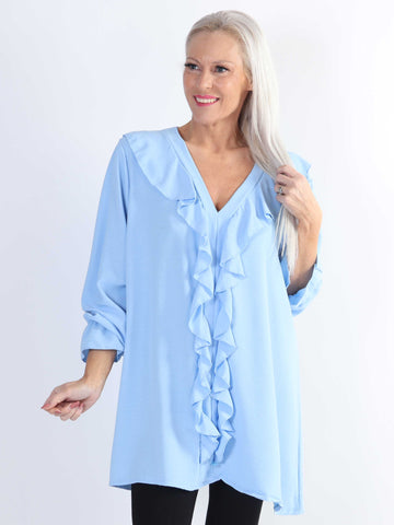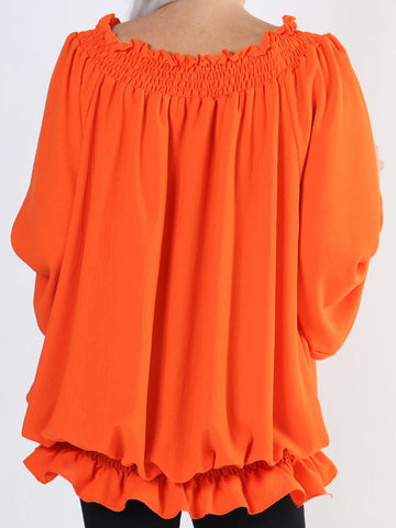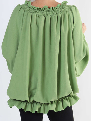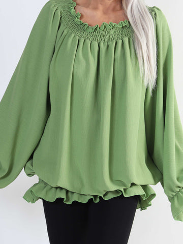 Monik - Ensfarvet plus size tunika med elastik- og flæsekanter