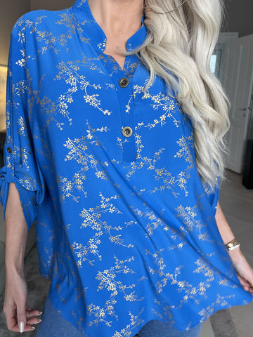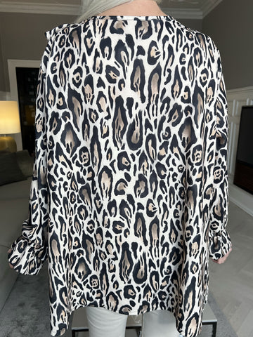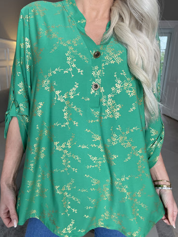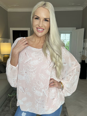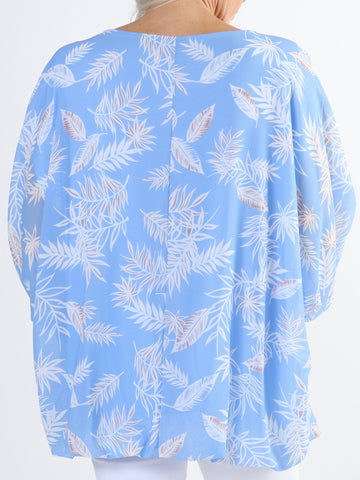 Destiny Leaf - Plus size bluse i chiffon med bladmønster