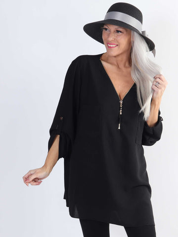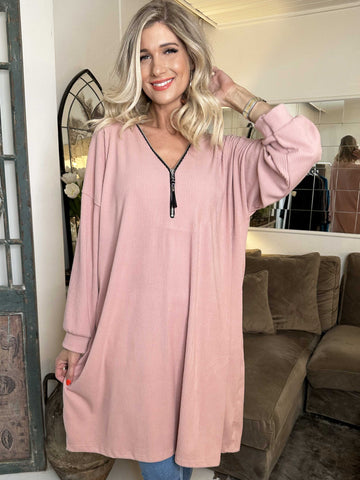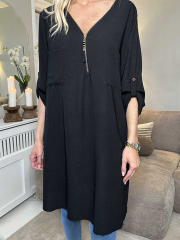 Claudia Dress - Plus size tunikakjole med lynlås og lommer