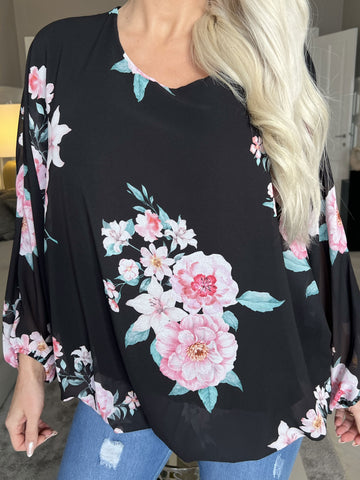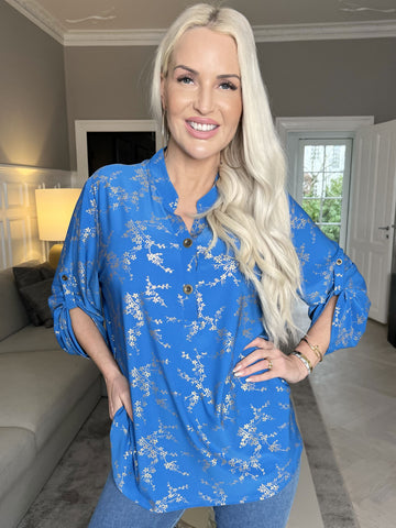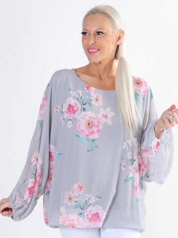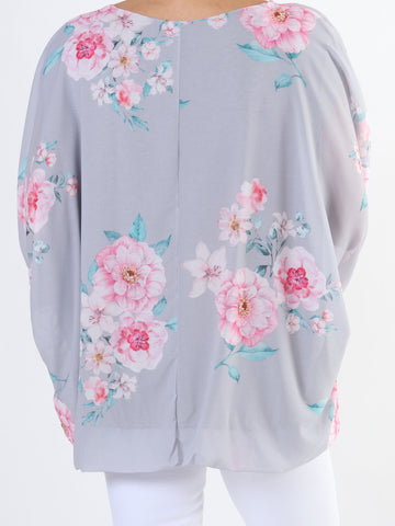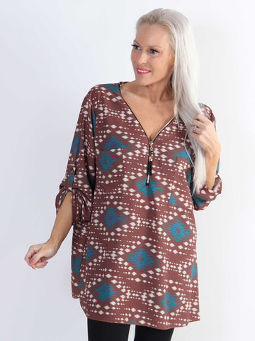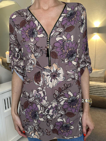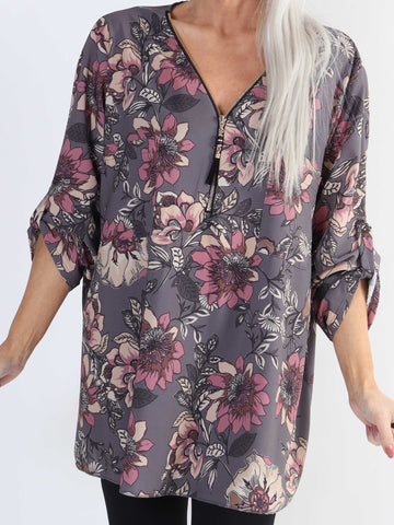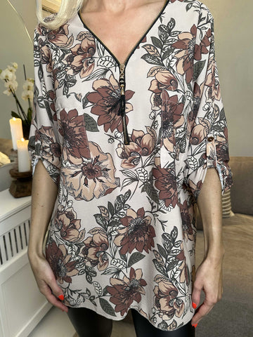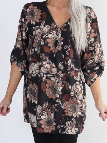 Claudia Flower - Plus size tunika med blomsterprint og lynlås